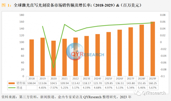 2022年全球激光直寫光刻設備市場規模達到了113.42百萬美元,預計2029年將達到160.25百萬美元,2023-2029年復合增長率(CAGR)為5.21%。