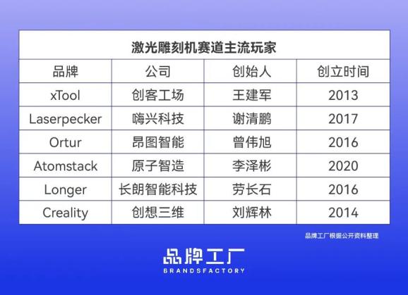 跟消費級3D打印賽道近親一般存在的,還有這幾年涌現出來的激光雕刻機賽道。在疫情前,這個賽道看起來一點不起眼,行業內最早的代表公司2016年才成立。