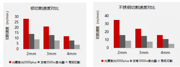 全新一代經濟型3000W連續(xù)光纖激光器對外觀設計和內部光學結構進行了全面升級,擁有較高的光束質量,電光轉化效率>42%,激光輸出穩(wěn)定性高,加工能力更強,4mm以下鈑金切割速度更快,無懼高反材料加工,最大提效增幅>50%,穿孔效率提升1倍,同時與市場同類產品配置下4mm以上厚板切割速度提升依然顯著。