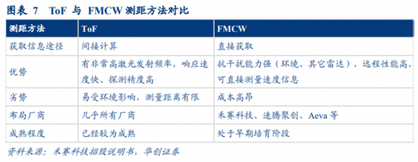 (2)ToF測(cè)距方法當(dāng)前為主流,F(xiàn)MCW具備良好前景