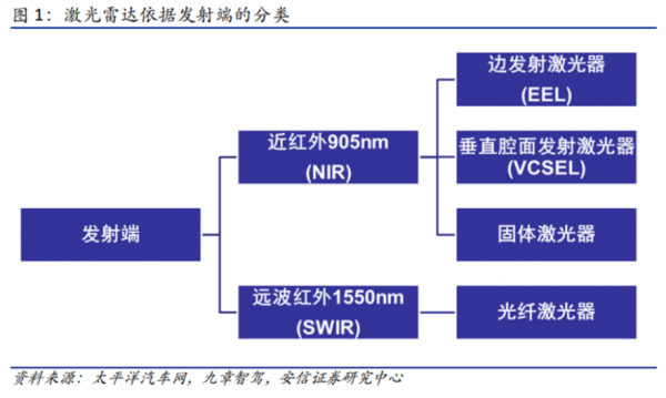 激光雷達(dá)的激光器可以分為以光纖激光器為代表的1550nm(遠(yuǎn)波紅外,SWIR)激光器和以半導(dǎo)體激光器為代表的905nm(近紅外,NIR)激光器。其中,近紅外激光器依據(jù)發(fā)光原理的不同,又可分為邊發(fā)射激光器(EEL),垂直腔面發(fā)射激光器(VCSEL)和固體激光器。