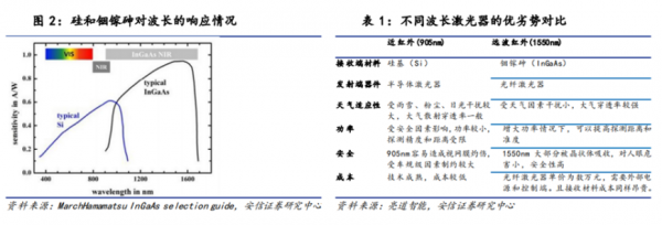 (2)905nm器件較為成熟,1550nm是未來(lái)發(fā)展方向