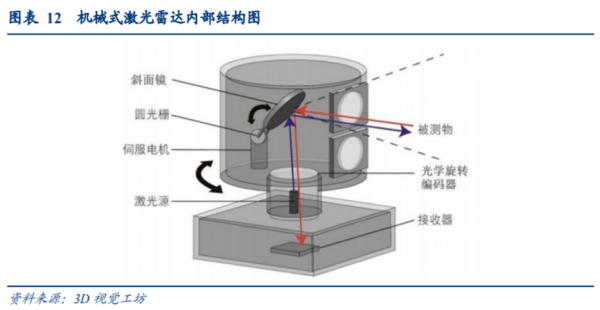 1)機(jī)械式雷達(dá)發(fā)展較為成熟,但因成本和部件冗雜難以實(shí)現(xiàn)車規(guī)級(jí)量產(chǎn)