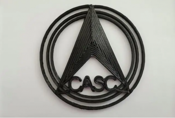 在軌太空3D打印的航天科技集團(tuán)CASC標(biāo)志,由碳纖維的長(zhǎng)絲連續(xù)構(gòu)成