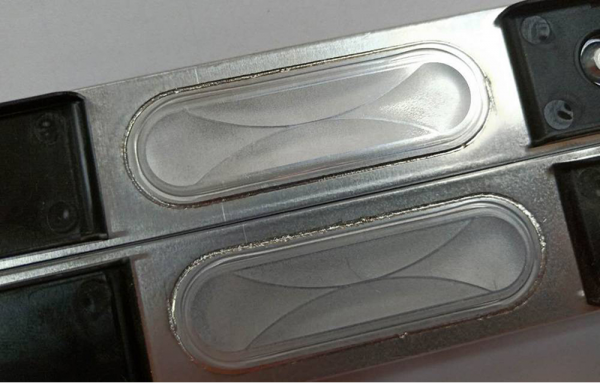 防爆閥是一種純鋁(1060或3003)的圓形薄片,厚度在0.08 ~ 0.1 mm之間。用紅外光纖激光器焊接時,由于固態鋁材對紅外激光的反射率高,且材料很薄,如焊接工藝不當,防爆閥在激光焊接過程中容易出現過燒穿孔或者炸孔,使其失去泄壓防爆的功能。