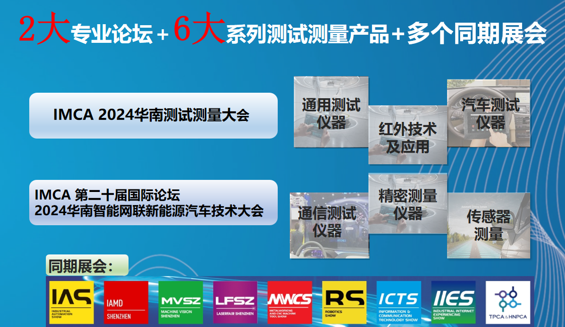 “IMCA 2024華南測試測量產業大會”“IMCA 第二十屆國際論壇 2024華南智能網聯新能源汽車技術大會”,屆時將特邀測試測量科技界重量級專家嘉賓、測試測量產業界國內外標級企業高管嘉賓,以及智能網聯新能源汽車產學研領域的權威專家、主流車企、三電及電池企業、核心技術提供商、關鍵零部件供應商等代表參加,全力打造智能汽車與新能源汽車技術以及測試測量儀器儀表全產業鏈技術盛宴!