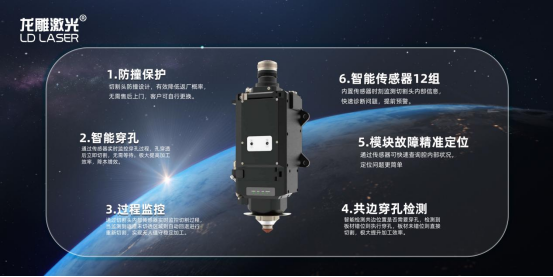 提及8萬瓦激光切割,用戶最為擔心一點的非切割頭穩定性莫屬。龍雕激光采用全新的柏楚系統搭配波刺8萬瓦智能激光頭,既能實現對切割過程中氣壓、保護鏡/聚焦鏡污染、核心腔體溫度等環境數據實時監測與反饋,還具備監控切割過程(如切割過程中發現切不透會自動回切)、智能穿孔、智能收刀等智能化功能,足以實現長時間滿功率穩定切割。