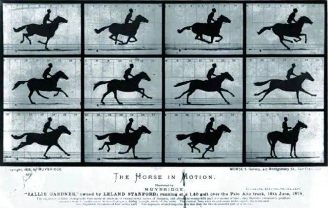 圖 邁布里奇1878年拍攝賽馬奔跑時的照片