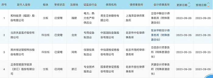 根據上交所網站,9月28日受理和特能源(福建)股份有限公司,9月26日受理北京天星醫療股份有限公司,9月25日受理鄭州恒達智控科技股份有限公司(下稱恒達智控),再加上9月6日受理的正泰安能數字能源(浙江)股份有限公司(下稱正泰安能),上交所9月來合計共受理了上述4家。其中,正泰安能計劃融資額為60億元,恒達智控計劃融資額為25億元。