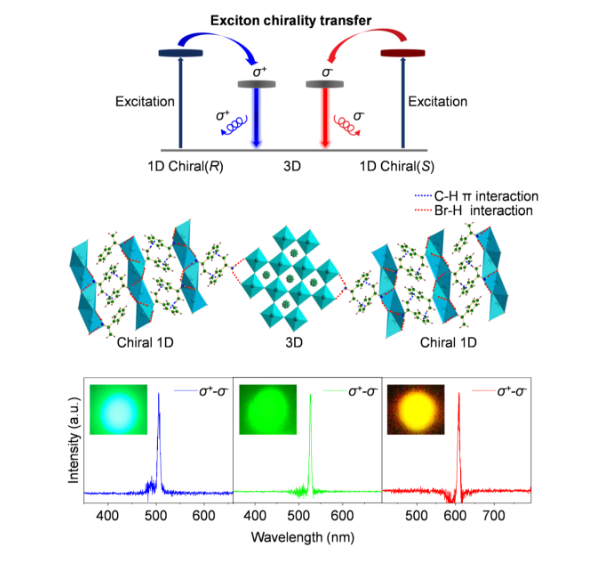 圖. 激子手性傳遞在1D鈣鈦礦錨定3D鈣鈦礦結構中實現自驅動自旋極化激光