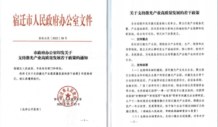 10月14日上午,中國宿遷第五屆激光裝備產業發展大會在宿遷市區開幕,會上,發布了《關于支持激光產業高質量發展的若干政策》。