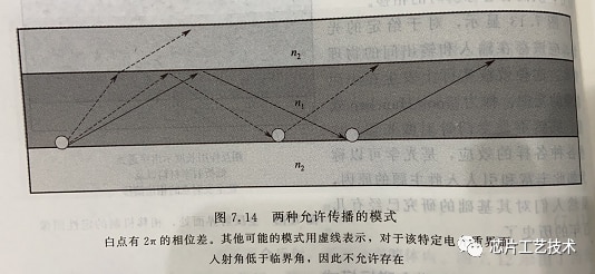 對于TE和TM模式,只有某些離散的角度可以成為導(dǎo)引模式,從而沿波導(dǎo)傳播。就像標(biāo)準(zhǔn)具的中的光,必須經(jīng)過相長干涉來使標(biāo)準(zhǔn)具支持某個特定波長一樣,波導(dǎo)中的光也必須經(jīng)過相長干涉,讓特定“模式”得以存在,對應(yīng)于特定的入射角。