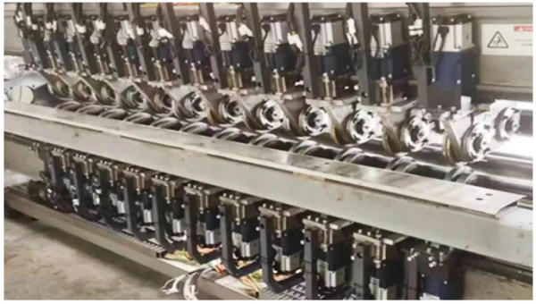問(wèn) 題 為兼容不同幅寬的裁切壓線需求,縱切壓線機(jī)會(huì)配置盡量多的切刀:如5刀8線需要21臺(tái)伺服電機(jī),7到12線則需要31臺(tái)伺服電機(jī)… 動(dòng)輒幾十臺(tái)的伺服軸,產(chǎn)生了以下問(wèn)題: 1、需要系統(tǒng)具有更高的同步精度和控制精度 2、安裝調(diào)試費(fèi)時(shí)費(fèi)力,降低工作效率 3、電氣柜空間緊張,影響散熱效果