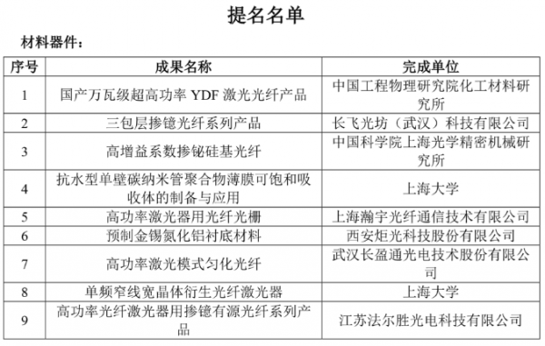 10月31日,中國光學工程學會公布“光纖激光五年優秀成果展”入選結果。經過學會組織專家的函評與會評,最終有16項入選優秀,42項獲提名。