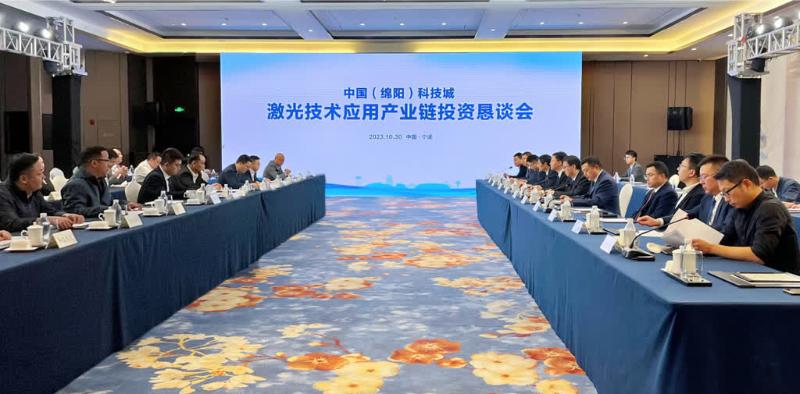 10月30日,中國(綿陽)科技城激光技術應用產業鏈投資懇談會在寧波市南苑飯店舉行,中國(綿陽)科技城光子技術研究院、綿陽華工激光科技有限公司負責人以及40余家長三角地區激光技術應用產業鏈企業代表等齊聚一堂,共話發展。綿陽市委常委、副市長黃朝陽出席會議并致辭,市政府副秘書長劉驍主持會議,市政府副秘書長王肖出席會議,游仙區委書記韓曉清作綿陽市游仙區激光技術應用產業推介。
