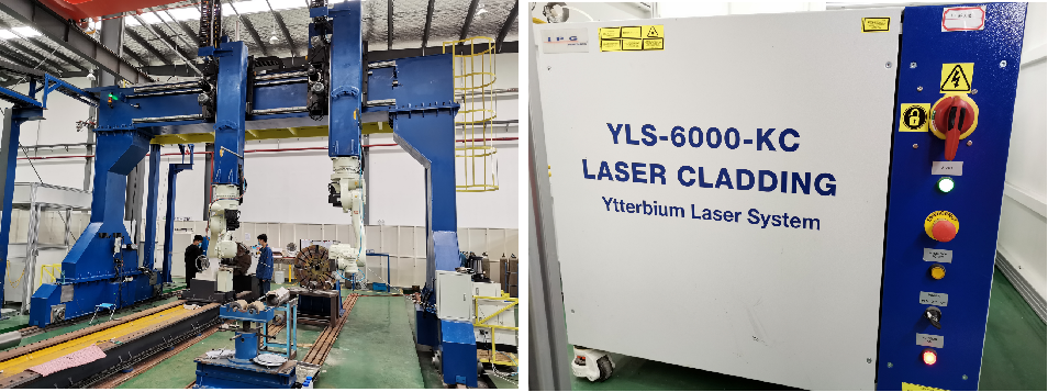 大型龍門雙機器人激光加工工作站,工作站配備一臺IPG6000W、一臺IPG8000W雙光路光纖激光器,具有極高的功率穩定性,重復定位精度為±0.05mm。配備Precitec激光熔覆頭/焊接頭/淬火頭、Fronius CMT焊機、川崎RS50高精度機器人,可實現單激光焊接、激光熔覆、激光淬火。