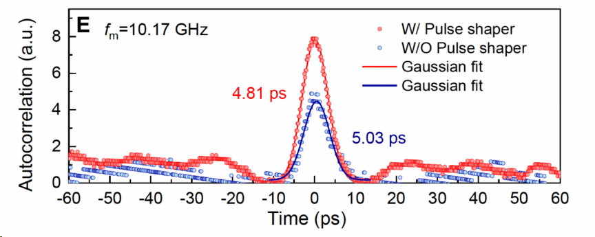 目前在光芯片上,已有多種技術(shù)手段可實(shí)現(xiàn)超短光脈沖,例如基于克爾效應(yīng)的光頻梳或基于電光效應(yīng)的光頻梳和時(shí)間透鏡等。在研究過(guò)程中,郭秋實(shí)反復(fù)思考一個(gè)問(wèn)題:運(yùn)用片上鎖模激光產(chǎn)生光脈沖的優(yōu)勢(shì)在哪里?我們可以用它來(lái)解決哪些領(lǐng)域內(nèi)的“痛點(diǎn)”?