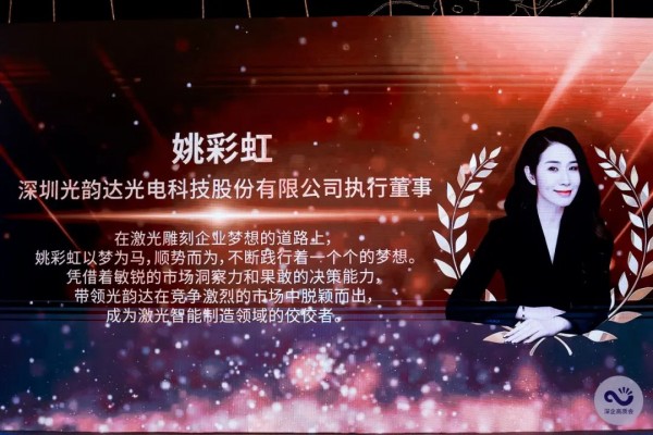 其中,深圳光韻達(dá)光電科技股份有限公司聯(lián)合創(chuàng)始人、執(zhí)行董事姚彩虹女士獲評“2023高質(zhì)量發(fā)展領(lǐng)軍人物”。