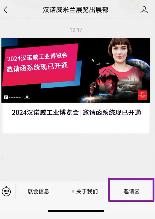 1. 點擊公眾號頁面下方“邀請函”按鈕: