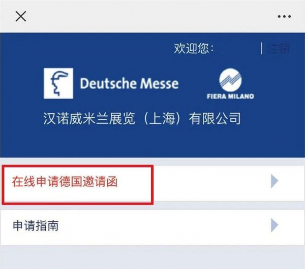 3. 點擊“在線申請德國展會邀請函”
