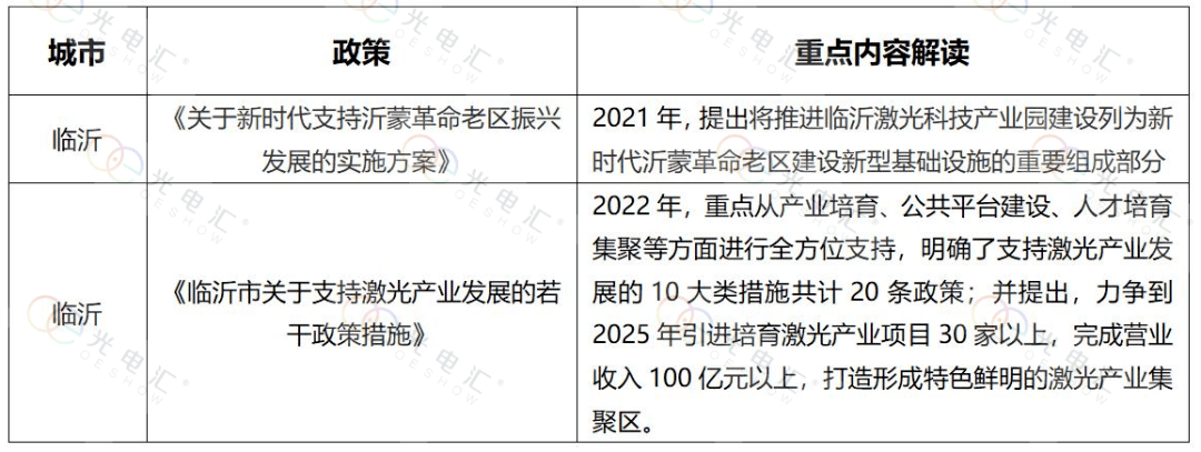除了產業園的建設和科研設施的引進,政府還加大出臺了不少相關產業政策,明確了發展激光加工裝備等在內的激光優勢產品。具體產業政策如下表: