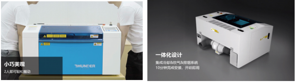 這是一款小巧而強大的新一代生產力工具,Thunder Bolt解決了以往激光切割機搬運難的痛點,凈重僅77kg,2人即可輕松搬運,且集成冷卻、吹氣和排煙系統,一體化的設計減輕繁瑣,可以更加輕松地實現創意。