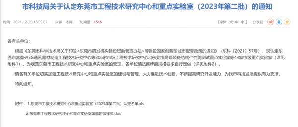 近日,東莞市科學技術局公布了關于認定東莞市工程技術研究中心和重點實驗室 (2023年第二批)的通知。