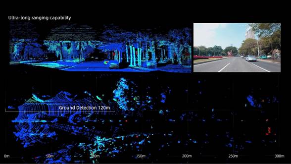 M3基于M平臺(tái)的二維掃描技術(shù)打造,是全球首款通過(guò)940nm激光技術(shù)實(shí)現(xiàn)300m@10%反射率測(cè)距能力的超遠(yuǎn)距激光雷達(dá),且具有0.05°x0.05°角分辨率的超高清三維成像能力。