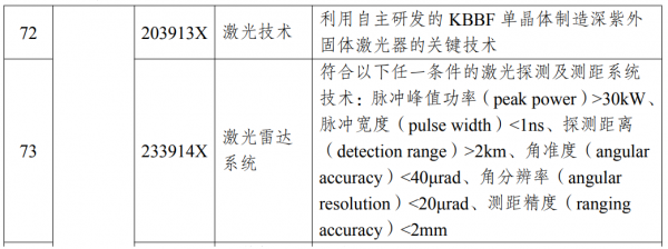 但是,在最新《目錄》中,有一項名為“激光雷達系統”的技術被列入限制出口部分,對該項“激光雷達系統”技術的控制要點描述為: