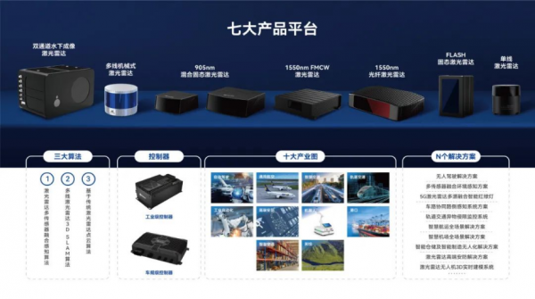鐳神智能還考慮到未來國際惡劣政治環境下有可能芯片禁運對企業生存的影響,在國內率先實現工業級及特種激光雷達百分之百全國產化,車規級激光雷達芯片全國產化進程正在穩步向前推進,真正做到不再依賴進口芯片,一樣可以為國內提供高端技術產品和解決方案。目前,鐳神智能構建了七大激光雷達產品平臺+三大算法+兩大控制器+N個全場景解決方案的業務生態,并打造了世界領先的3D SLAM無人叉車系統解決方案,服務覆蓋自動駕駛、智慧交通、軌道交通、通用航空、機器人、智慧物流、高端安防、港口、測繪、工業自動化等產業生態圈。