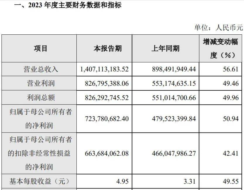 2月24日柏楚電子發布業績快報公告。公告稱,2023 年度,公司實現營業收入140,711.32 萬元,較上年同期增長 56.61%;實現營業利潤 82,679.54 萬元,較上年同期增長 49.46%; 實現利潤總額 82,629.27萬元,較上年同期增長 49.96%;實現歸屬于母公司所有者的凈利潤 72.378.07 萬元,較上年同期增長 50.94%;實現歸屬于母公司所有者的扣除非經常性損益的凈利潤 66,368.41 萬元,較上年同期增長 42.41%。