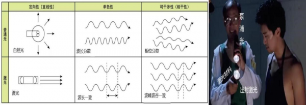 激光的特點在于它所有的光子都以同樣的波長、同樣的相位一起運動。與自然光相比,主要有三大特點: