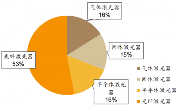 2.1.2半導(dǎo)體激光器市場(chǎng)規(guī)模達(dá)140億元,占據(jù)激光器市場(chǎng)16%份額