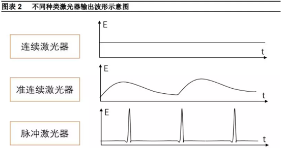 其中,按照能量輸出波形,激光器可以分為連續激光器、脈沖激光器、和準連續激光器: