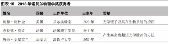 2018年10月2日,瑞典皇家科學院在宣布,美國科學家亞瑟·阿斯金(Arthur Ashkin)、法國科學家杰哈?莫羅(Gérard Mourou)和加拿大科學家唐娜·斯特里克蘭(Donna Stricklan)獲得2018年諾貝爾物理學獎。