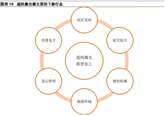 超快激光在真正意義上實現了冷加工,在精密加工方面有顯著優勢,隨著超快激光器的生產工藝逐漸成熟,成本逐漸下降,未來有望廣泛的應用于醫療生物、航空航天、消費電子、照明顯示、能源環境、精密機械等下游行業。