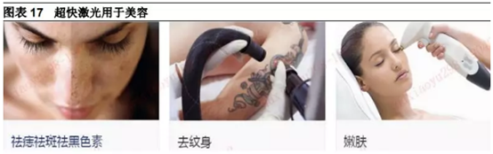 在美容方面,超快激光可用于去除色素和原生痣、去除紋身等,也可以用來改善肌膚的衰老情況。
