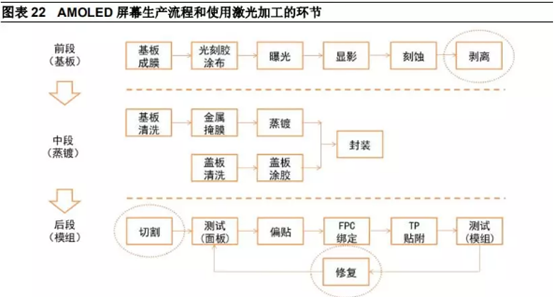 超快激光在面板制造中,也有重要應用。OLED偏光片的切割、LCD/OLED制造過程中的剝離及修復,都可使用超快激光。