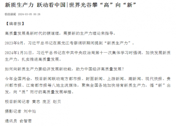 發展新質生產力,推動高質量發展,是每家中國企業需要面對、并回答好的一個課題,國有企業更應發揮資源稟賦優勢,積極搶占新一輪全球科技革命和產業發展制高點,開辟發展新領域新賽道、培育發展新動能,在培育、發展新質生產力上先行先試,在創新路上跑出加速度。
