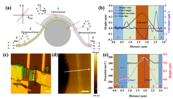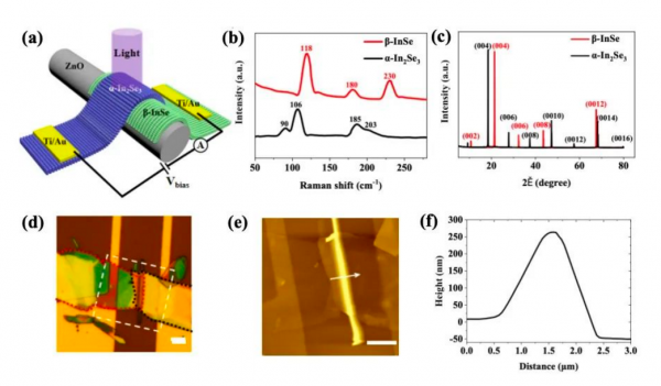 近期,深圳技術大學阮雙琛教授團隊利用不同直徑的ZnO納米線作為彎曲介質制備出具有大應變梯度的α-In2Se3/β-InSe光電探測異質結。