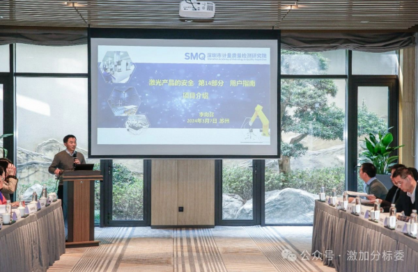 下午的會議,國家標準《激光產品的安全 第14部分:用戶指南》牽頭單位深圳市計量質量檢測研究院李向召部長介紹了標準工作組草案以及工作計劃等情況。與會專家及起草組成員就目前草案中存在問題點進行了討論。