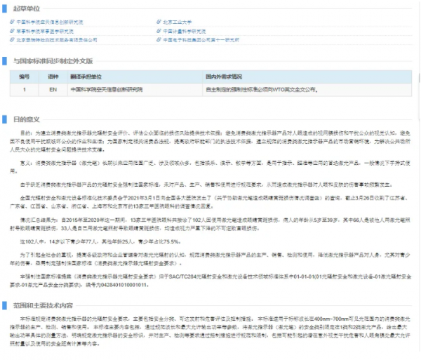 8. 強制性國家標準制定項目“制定《消費類激光指示器產品光輻射安全要求》”(計劃編號20221505-Q-339),征求意見時間為:2024年3月12日至5月11日。