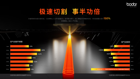 在激光切割技術的研發中,邦德激光在行業首創激光掃描切割機新品類,徹底顛覆行業“功率即效率”的固有觀念,實現同等功率下的“速度倍升、厚度倍增、無懼高反”,重新定義激光切割機的未來。