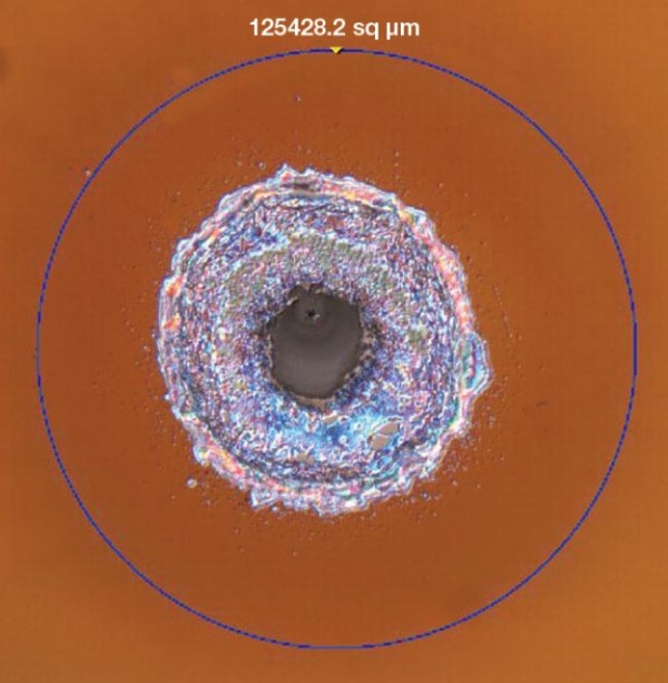 高功率激光系統(tǒng)越來越容易受到激光誘導(dǎo)的損傷,例如玻璃表面的損傷,這是使用微分干涉對(duì)比顯微鏡捕獲的。