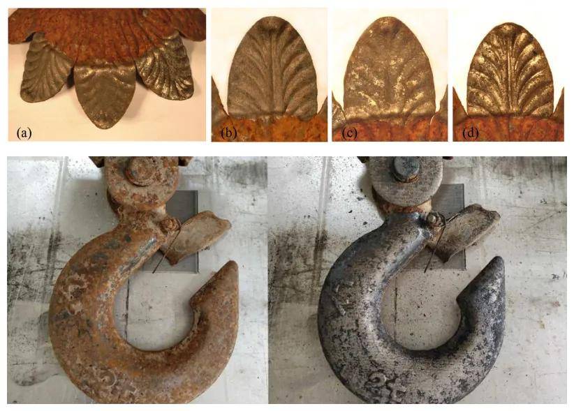 (1)激光除銹:金屬物體長期暴露在潮濕的空氣中容易產生銹蝕層。銹蝕層的存在不僅影響使用性能,加速腐蝕,而且對使用安全性和壽命產生嚴重的影響。傳統除銹的方法有噴丸和化學清洗法,這兩種方法效率較高、技術成熟,但是會對環境造成污染,且有害操作者健康,因此激光清洗法得到廣泛關注,其綠色環保、高效率、高精度、成本低,可以代替常規清洗方法,已在工業中逐步有了應用。