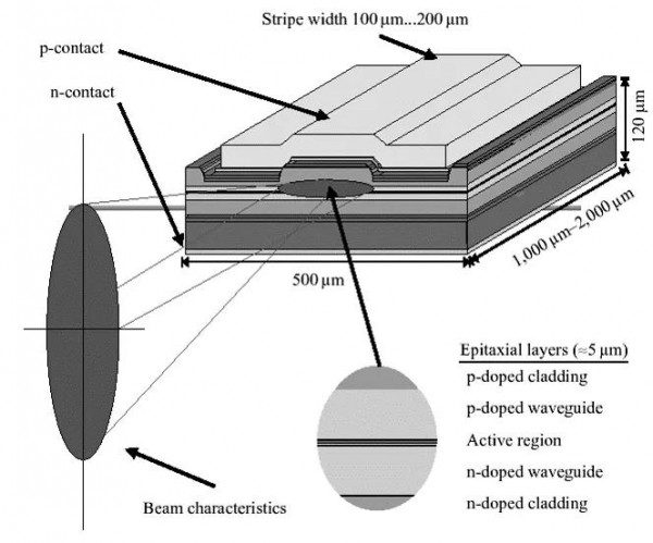 半導體激光器是一種電光轉換器件,近50年來取得了快速發展和豐碩成果,在科學研究和工程技術中有著廣泛的滲透和應用。它利用半導體材料作為增益介質,通過電子在能級間躍遷發光的原理,利用由半導體晶體構成的諧振腔和平行反射鏡,在電注入下實現光振蕩、反饋,并最終產生光的輻射放大,從而實現激光輸出。