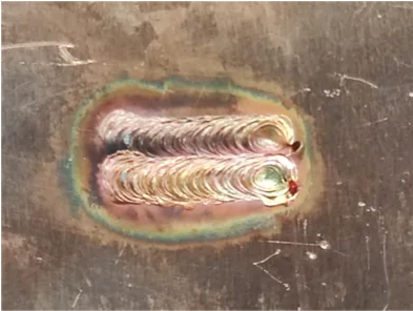 焊接軌跡長度8mm,焊道數量2條,焊道間距2mm。在焊接功率4800W+1800W激光功率及相應的擺動參數和焊接速度條件下??色@得焊后剪切力超過2000N的焊接效果。圖7為焊道外觀和拉力測試顯示。