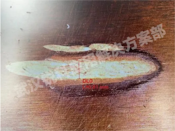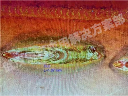 圖10為IGBT銅板的焊接,上板厚度為1.5mm,下板厚度為0.6mm,焊接后表面寬度為1mm,連接寬度為0.8mm,焊接速度可達250mm/s,焊接熱影響控制較好,背面基本無背痕。