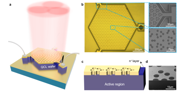 該工作為高性能電泵浦拓?fù)浼す馄餮邪l(fā)工作提供了新思路,對推動高性能電泵浦拓?fù)浼す馄鞯陌l(fā)展和應(yīng)用具有積極意義。5月24日,相關(guān)研究成果以High-power electrically pumped terahertz?topological laser based on a surface metallic?Dirac-vortex cavity為題,發(fā)表在《自然-通訊》(Nature?Communications)上。研究工作得到國家自然科學(xué)基金、國家重點研發(fā)計劃以及中國科學(xué)院青年創(chuàng)新促進(jìn)會等的支持。