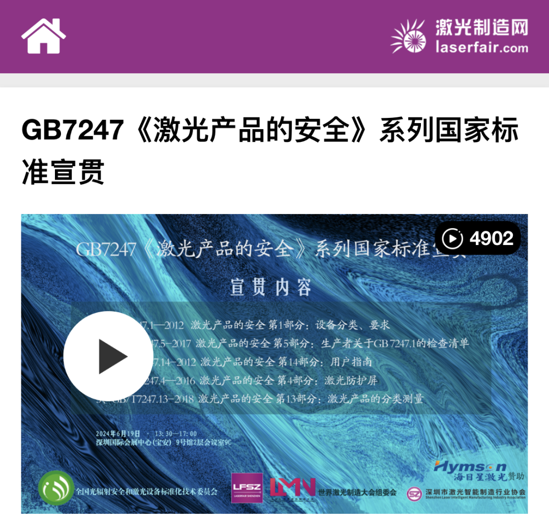 全國光輻射安全和激光設備標準化技術委員會(SAC/TC284,以下簡稱標委會)作為承辦方之一,在世界激光制造大會成功組織召開了GB 7247 系列國家標準宣貫會。本次宣貫會采用線下授課與線上直播相結合的方式進行,全網直播共有4900余人線上觀看,線下共有160余人參與宣貫。